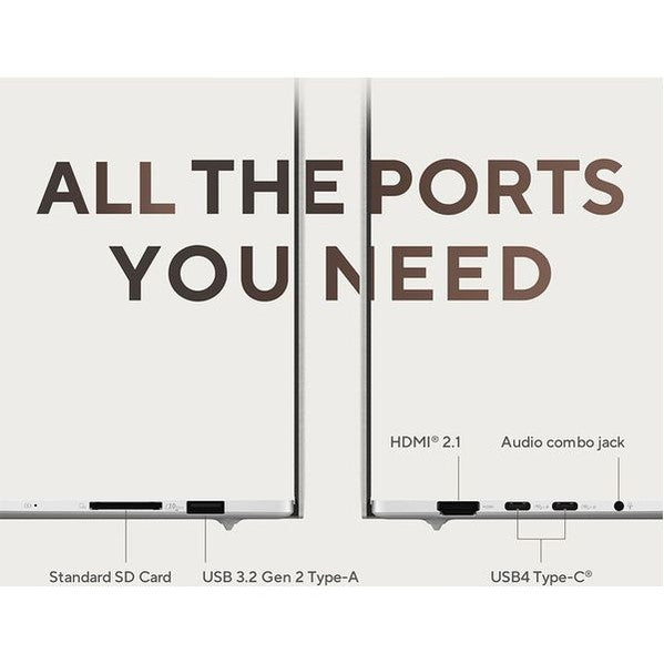- Comprehensive connectivity: 2x USB 4.0 Type-C, USB 3.2 Gen 2 Type-A, HDMI 2.1, and SD card reader