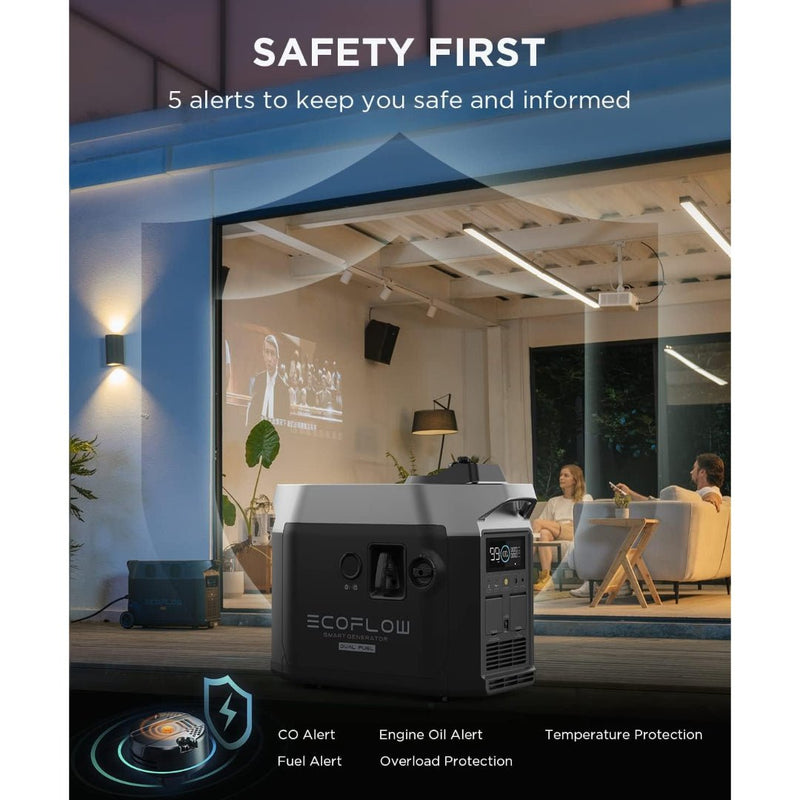 The Smart Generator (Dual Fuel) keeps you in the know with a carbon monoxide detector, fuel alert, engine oil alert, temperature protection, overload avoidance, and a whole lot more. All are clearly visible with indicators on the unit, and all (excluding fuel alert) can trigger an auto-shutdown to keep you and your batteries safe. - Four ways to start means power comes easy.