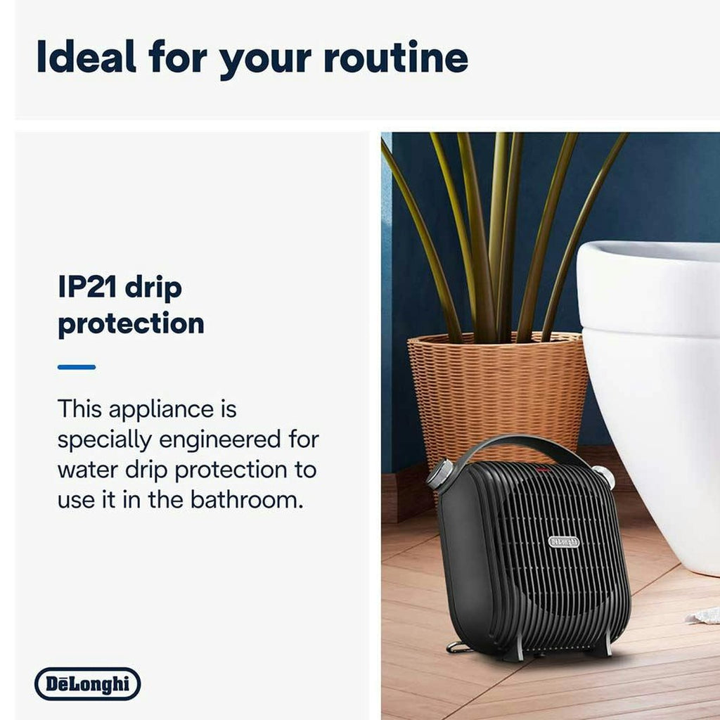 Mechanical controls make temperature adjustments simple, while a two-position base lets you aim the heat exactly where you need it. Lightweight and durable, with IP21 drip protection and auto shut-off safety, it’s a smart, everyday solution for warming the little corners of your home.