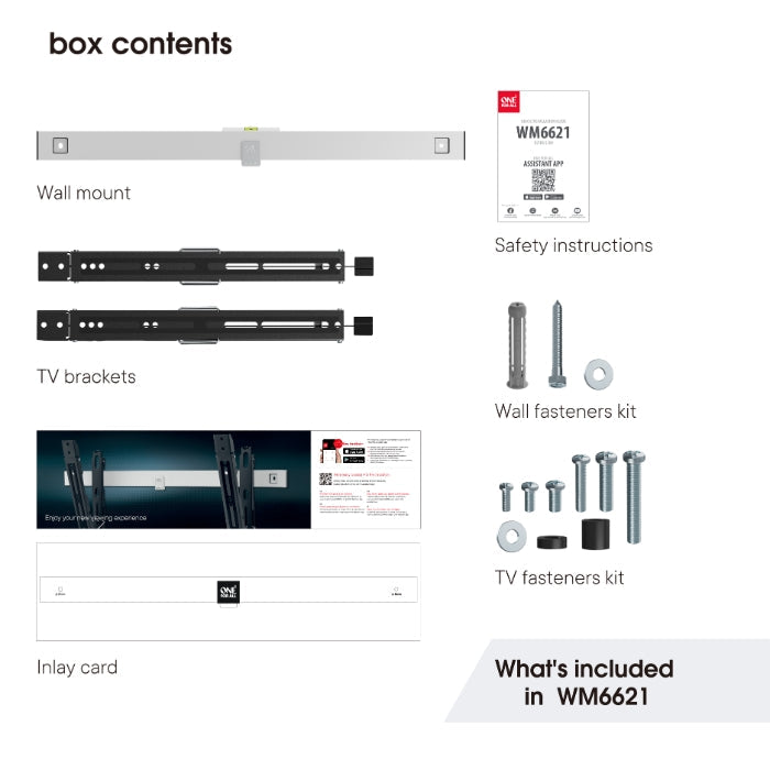With a slim profile that holds your TV close to the wall, the WM6621 keeps your space looking modern and clean. Installation is quick and easy—simply mount, adjust, and enjoy great viewing from any angle.