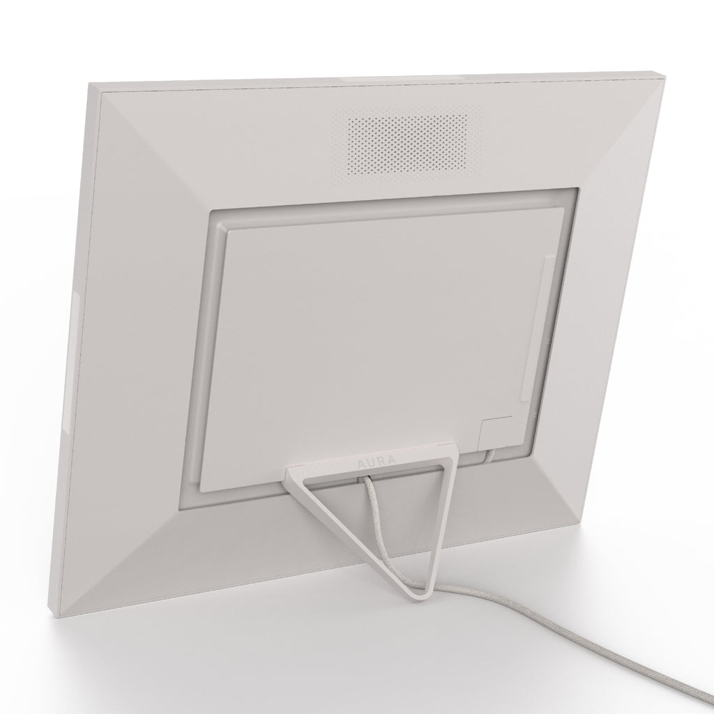 Bring your family photos and video memories to life at a grand scale with the Aura Walden 15" HD Photo Frame. This premium frame blends classic design with smart display technology, giving you a large, crisp 15″ screen that fits beautifully on a shelf or mounted on a wall. Its dual‑orientation, anti‑glare display and textured paper mat surround help photos appear natural and elegant — like printed photos in a traditional frame.