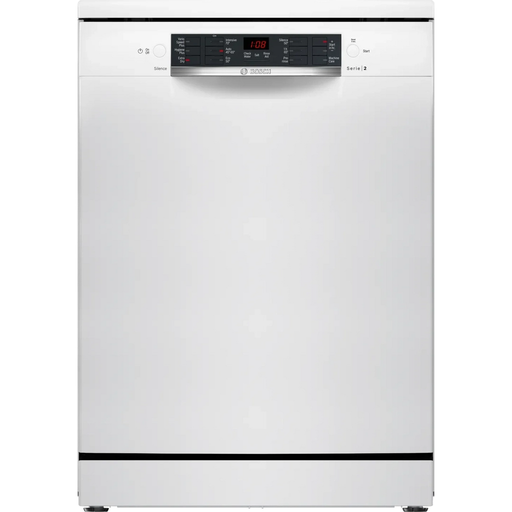 Upgrade your kitchen with the Bosch SMS26AW08G Free-Standing Dishwasher, designed for modern homes with a 60cm width. Engineered to deliver excellent cleaning performance, this dishwasher features multiple wash programmes, adjustable racks, and a user-friendly digital control panel. Its innovative technology ensures thorough cleaning and efficient water usage, all wrapped in a sleek stainless steel finish that complements any contemporary kitchen décor.