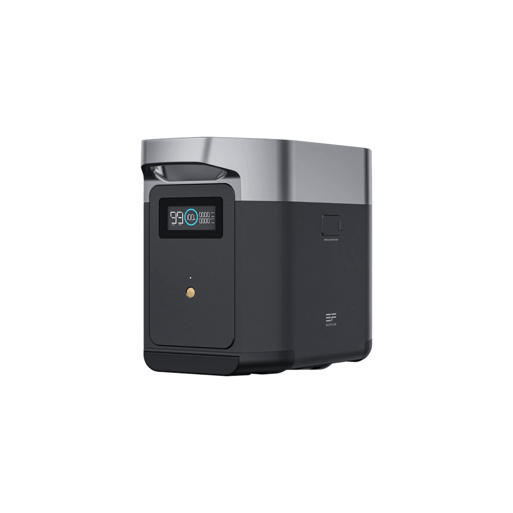 DELTA 2 and its Extra Battery charge and discharge in unison. Recharging from portable solar panels, AC outlets, or our Smart Generator is easy.