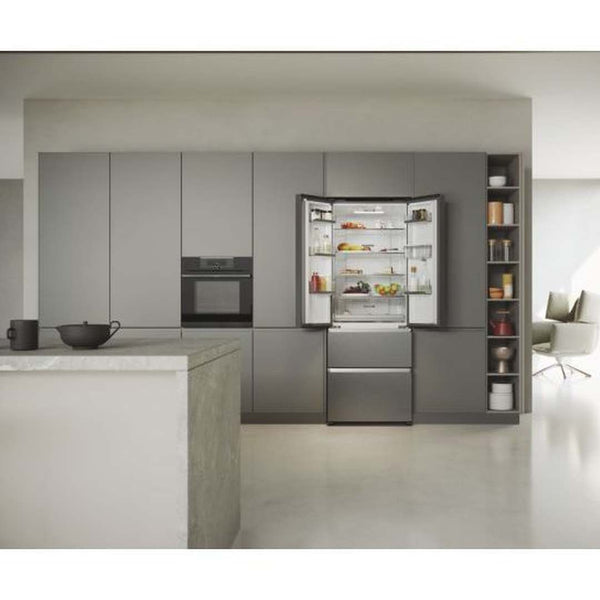 The Haier HFR5719EWMP is a premium French door fridge freezer designed to meet the needs of modern Irish households. With its generous 444-litre capacity, this appliance offers ample space for all your fresh and frozen goods, making it ideal for families and avid home cooks alike.