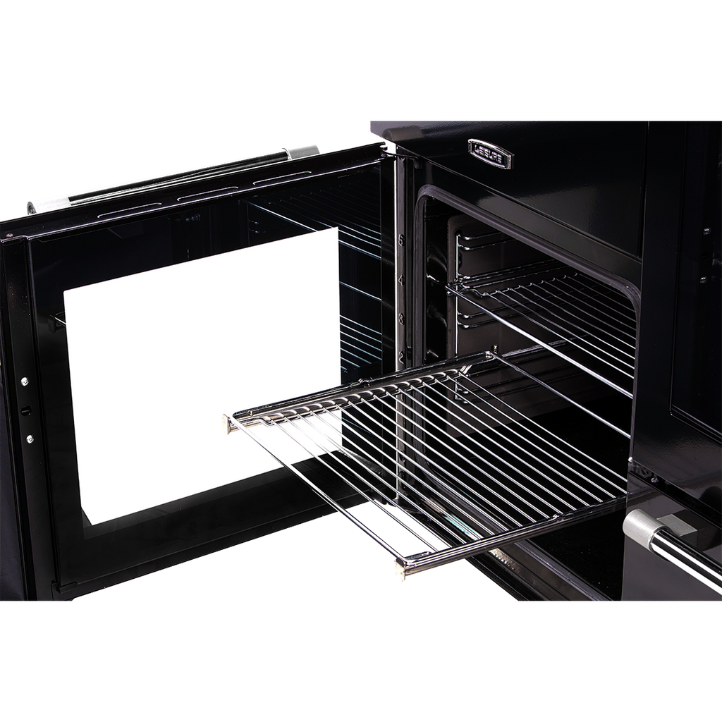 Bring traditional elegance and versatile cooking to your kitchen with the Leisure Cookmaster 100cm Dual Fuel Range Cooker. Finished in a sleek black with chrome accents, this cooker combines classic design with modern functionality, making it a standout addition to any Irish home.