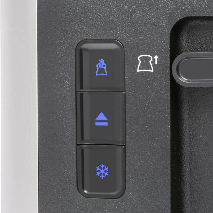Featuring six browning levels, plus dedicated defrost, reheat and cancel functions, the toaster gives you complete control over your ideal toast. The lift‑and‑look and high‑lift mechanisms mean safer and more convenient retrieval of smaller items without interrupting the cycle. A removable crumb tray ensures quick cleaning and keeps counters tidy.