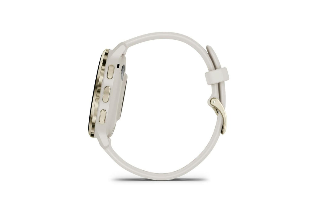 The Garmin Venu 3S GPS Smartwatch is a stylish and compact fitness wearable with a bright 1.2″ AMOLED touchscreen, built to support your health, fitness and daily activity needs. Its elegant soft gold bezel paired with an ivory case and comfortable silicone strap makes it a great choice for both sporty and everyday looks.