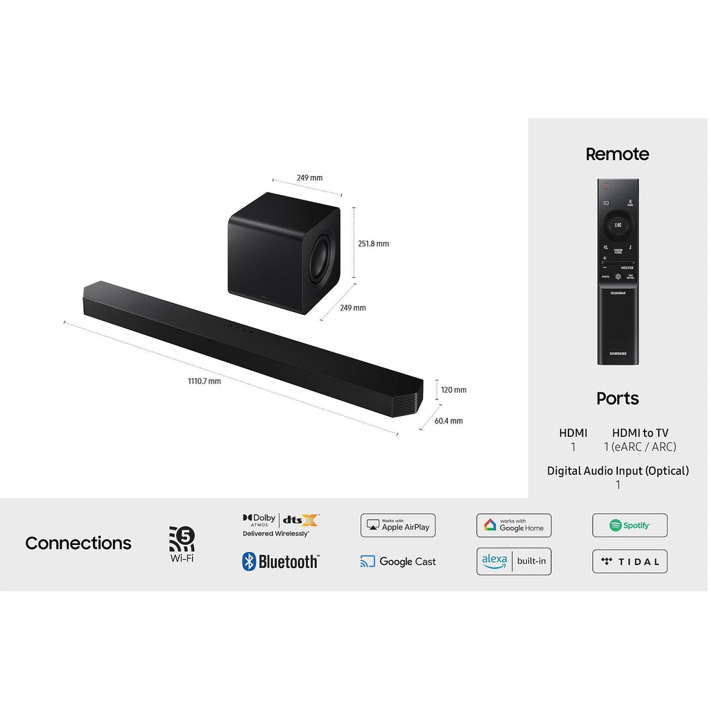 With 5.1.2‑channel Dolby Atmos sound, a compact wireless subwoofer, and AI-driven features like SpaceFit Sound Pro and Active Voice Amplifier Pro, expect stunning clarity and immersive depth. Plus, Q‑Symphony syncs seamlessly with Samsung TVs for richer, harmonised sound.