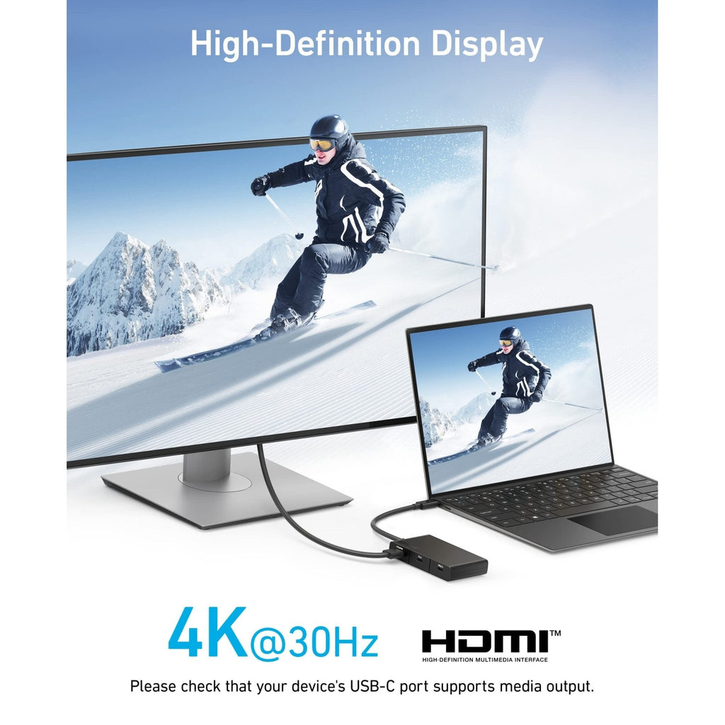 Upgrade your laptop's connectivity with the Anker 332 USB-C Hub. With this lightweight and compact hub, you can turn one USB-C port into five powerful ports: a 4K HDMI port, a 5 Gbps USB-C port, 2 USB-A ports, and a 100W PD-IN port. Stay connected and productive wherever you are.