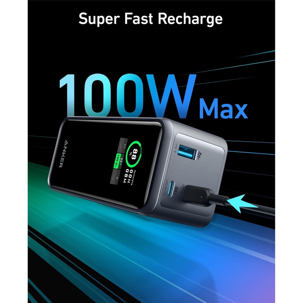 Recharge the power bank in just 1 hour and 15 minutes with 100W rapid charging via the USB-C port, ensuring minimal downtime between uses and keeping you ready for any power needs.