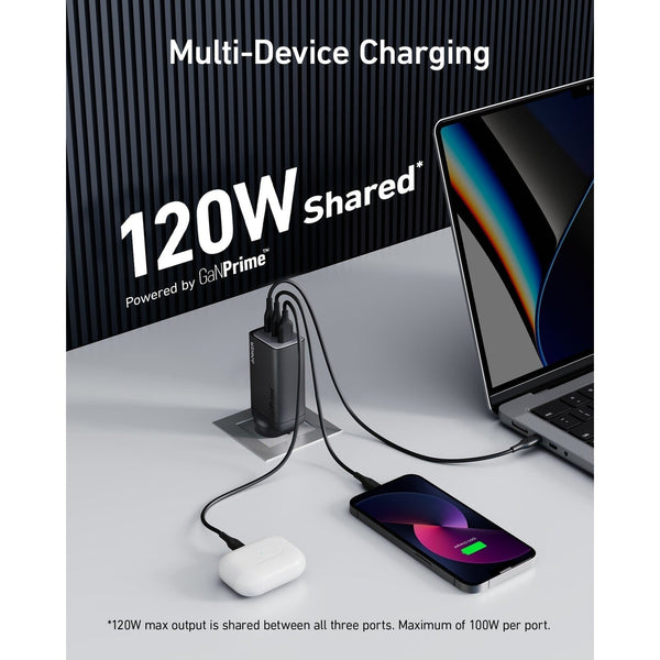 With two USB-C ports and one USB-A port, you can charge your phone, tablet, and laptop all at once. Connect a single device to benefit from up to 100W charging power for fast and efficient charging whenever you need it.
