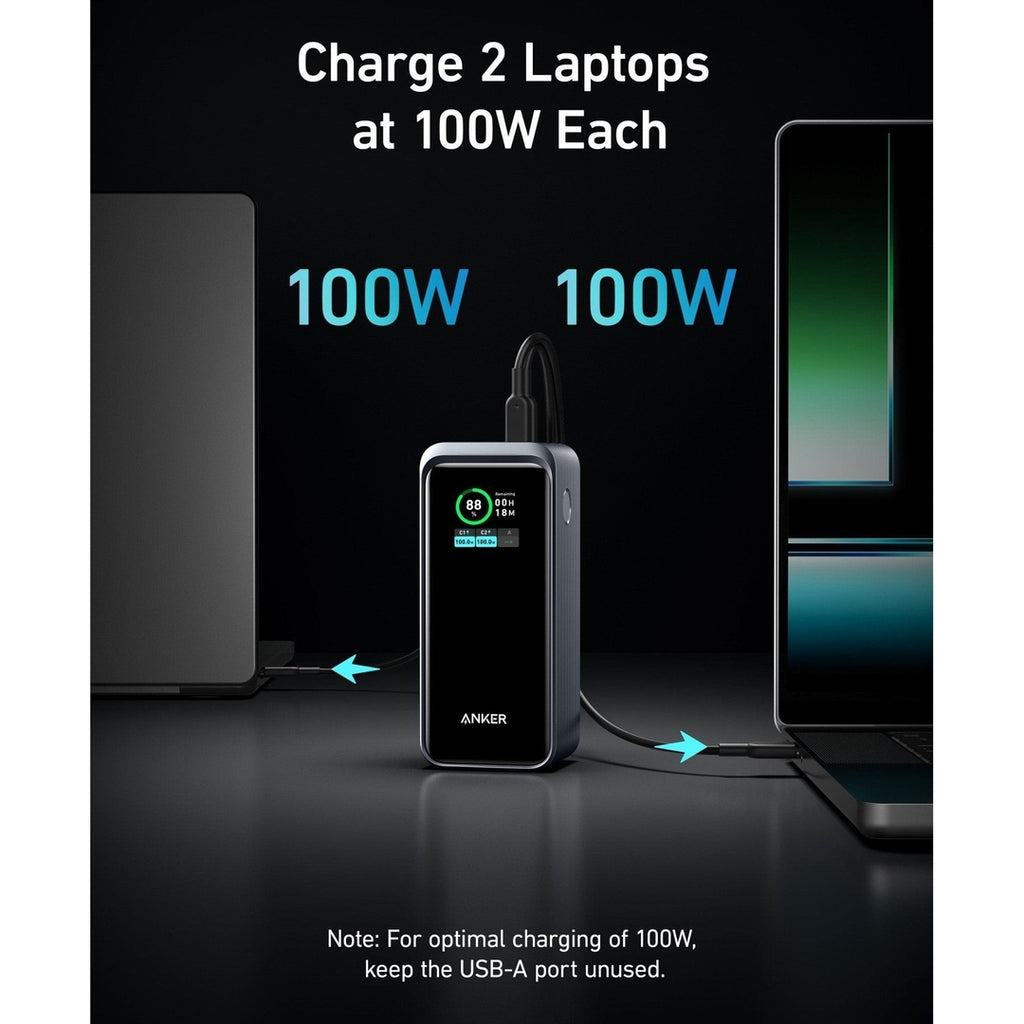 Featuring two high-powered USB-C ports and one USB-A port, this power bank delivers a total of 200W output, allowing you to rapidly charge two laptops simultaneously at 100W each. Experience unmatched efficiency and convenience for all your devices.