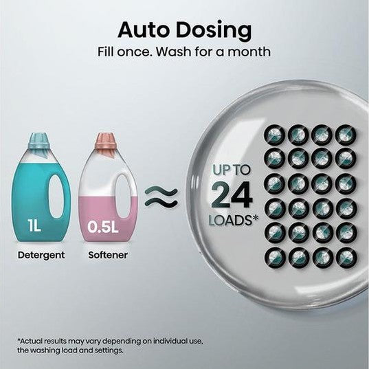 - Auto Dosing system stores detergent for up to 24 washes, dispensing the precise amount needed.
