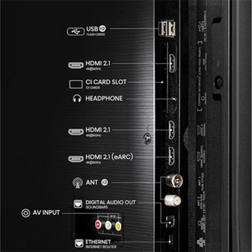 - Connectivity: 3 x HDMI 2.1, 2 x USB 2.0, Wi-Fi (2.4G/5G), Bluetooth, Ethernet