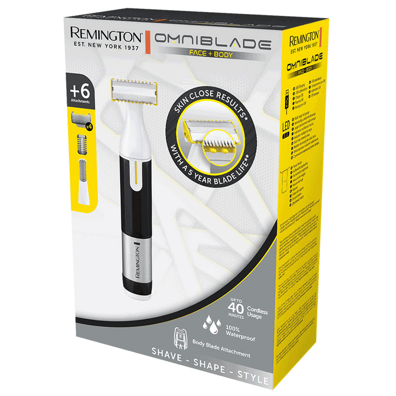 Work your grooming from head to toe with the Omniblade Face and Body Groomer. With a Removable Head and 6 Interchangeable Attachments, you can achieve Skin-Close Results and create multiple styles with up to 40-Minutes Usage Time. Its Intuitive Design gives you complete control and you won’t have to worry about changing the blades, as they’re Guaranteed to Last for 5 Years**.
